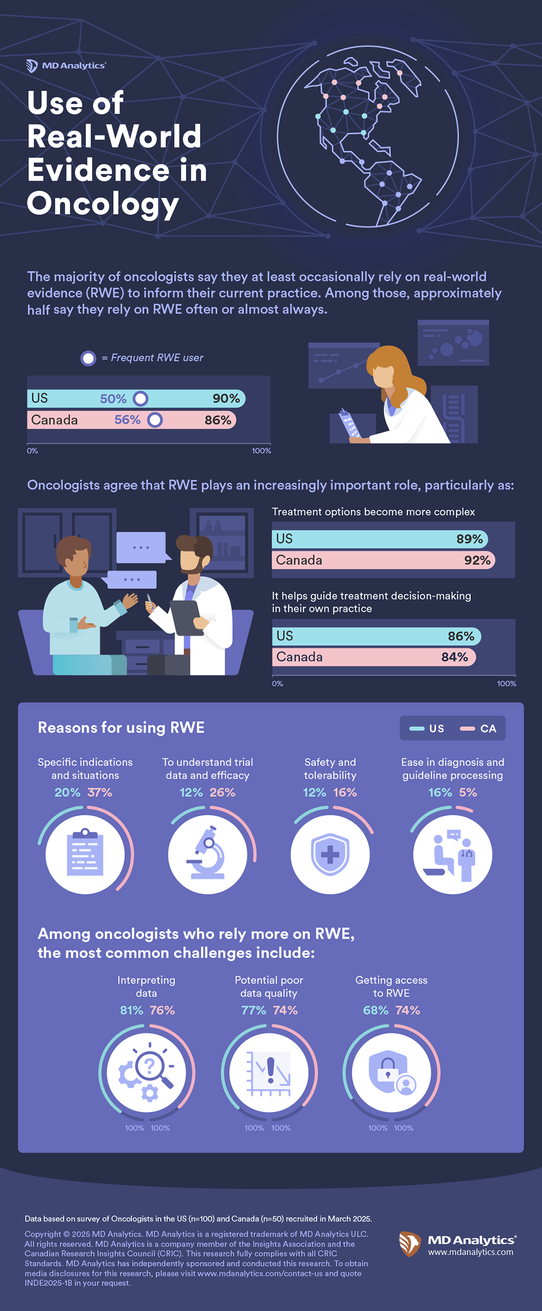 As oncology treatments have become more personalized and complex, the value of real-world evidence (RWE) has grown significantly. To better understand how oncologists are integrating RWE into their clinical decision-making, we surveyed 50 Canadian and 100 U.S.-based oncologists. The findings highlight both the rising importance of RWE in practice and the key areas where pharmaceutical companies can play a more active, supportive role.