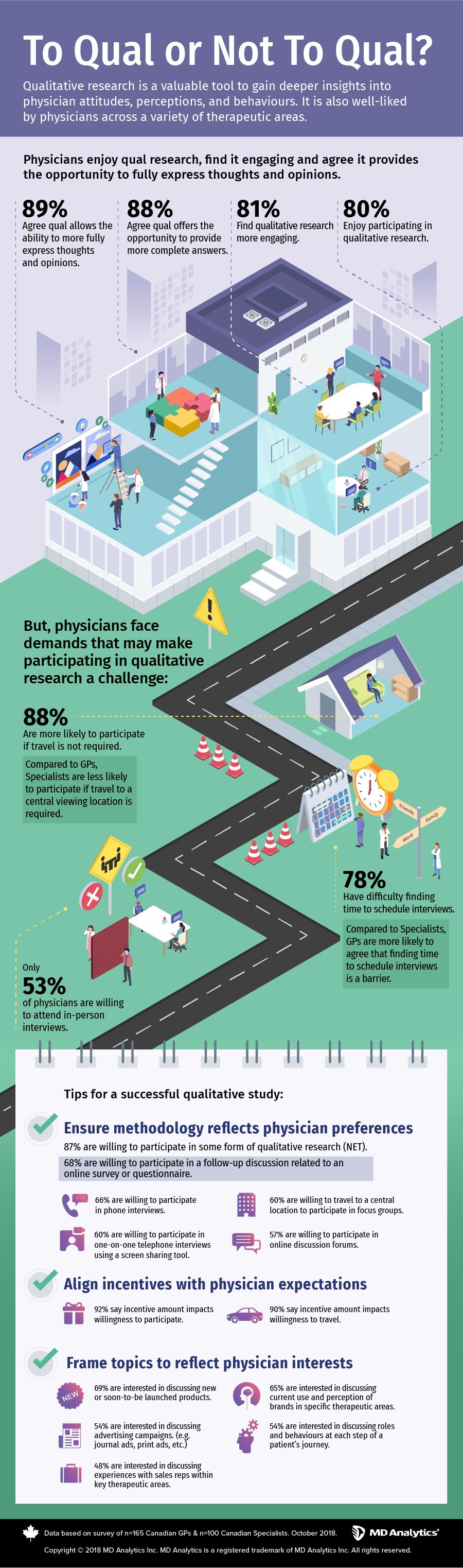 Qualitative research can provide a deeper understanding of physicians’ attitudes and behaviours than quantitative methodologies, however increased demands on physician time may cause some to refuse participating. Determining the optimal study design and appropriate recruitment techniques can help physicians become more willing to participate. This month’s featured quick poll among 165 GPs and 100 medical specialists will uncover how to avoid roadblocks and increase physician interest to get the most out of qualitative research.