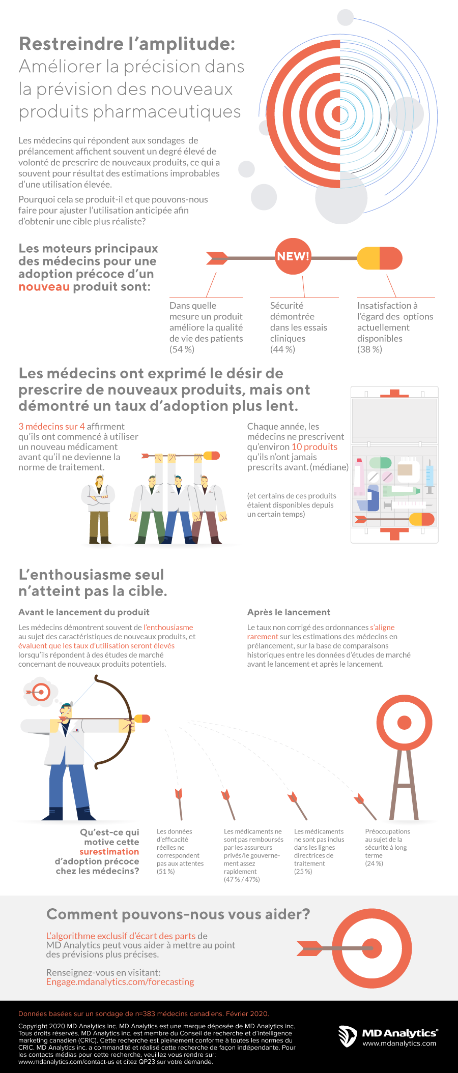 Au fil des ans, MD Analytics a apporté son soutien au lancement d’un grand nombre de nouveaux produits pour ses clients du secteur de la santé et de l’industrie pharmaceutique, dans un large éventail d’indications allant des médicaments liés au style de vie aux traitements oncologiques. Nous avons souvent observé un grand enthousiasme chez les médecins pour de nouveaux produits dont les descriptions ne portaient pas de marque ainsi que la part importante d’ordonnances qu’ils prévoyaient pour ces produits.